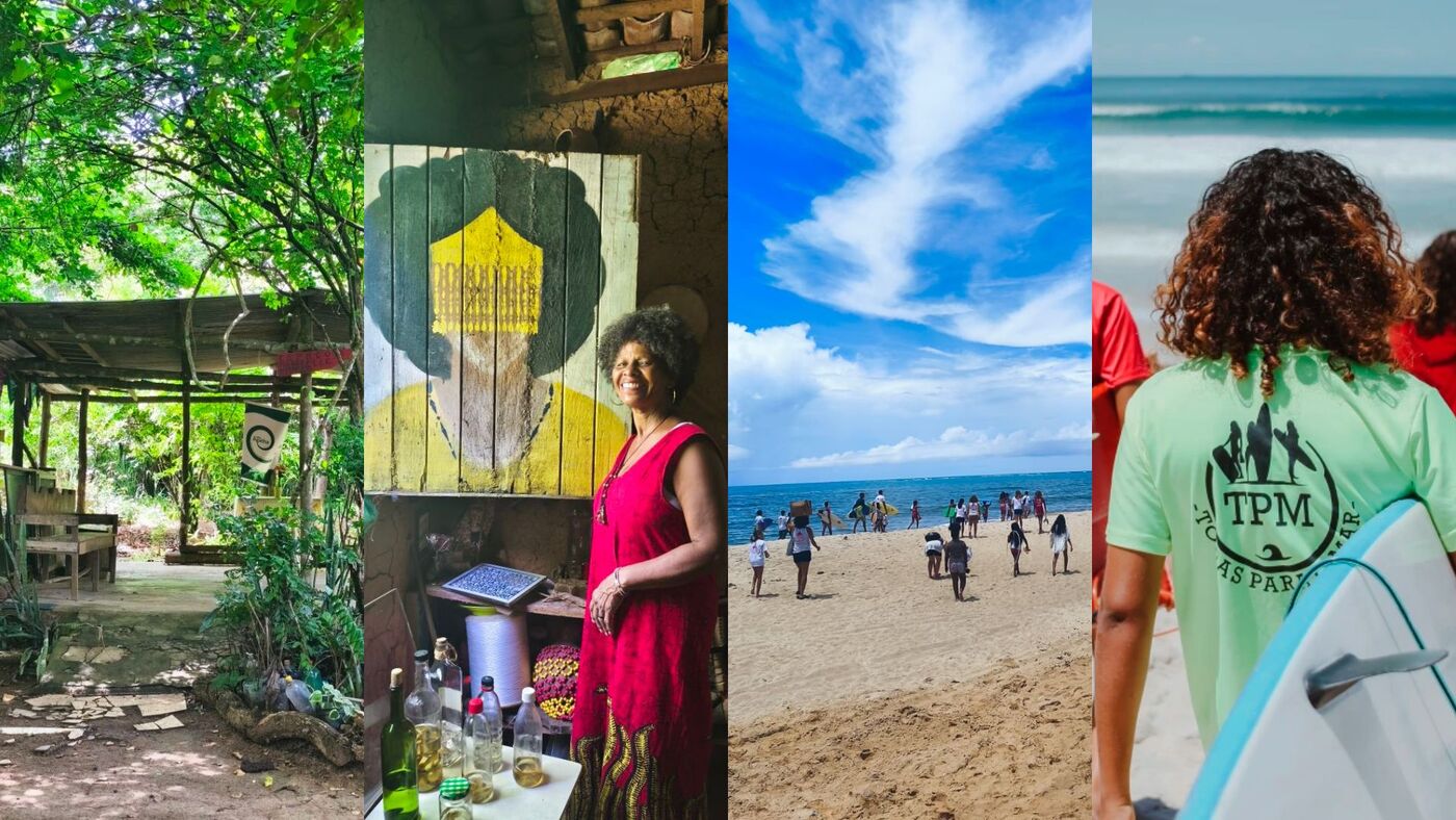 Na ONG TPM – Todas Para o Mar, atividades promovem empoderamento, por meio da democratização do surf e de práticas que valorizam a diversidade e a inclusão. Fotos 1 e 2: Reprodução/Instagram @tpmtodasparaomar – Foto 3: Aline Lima/PACS
