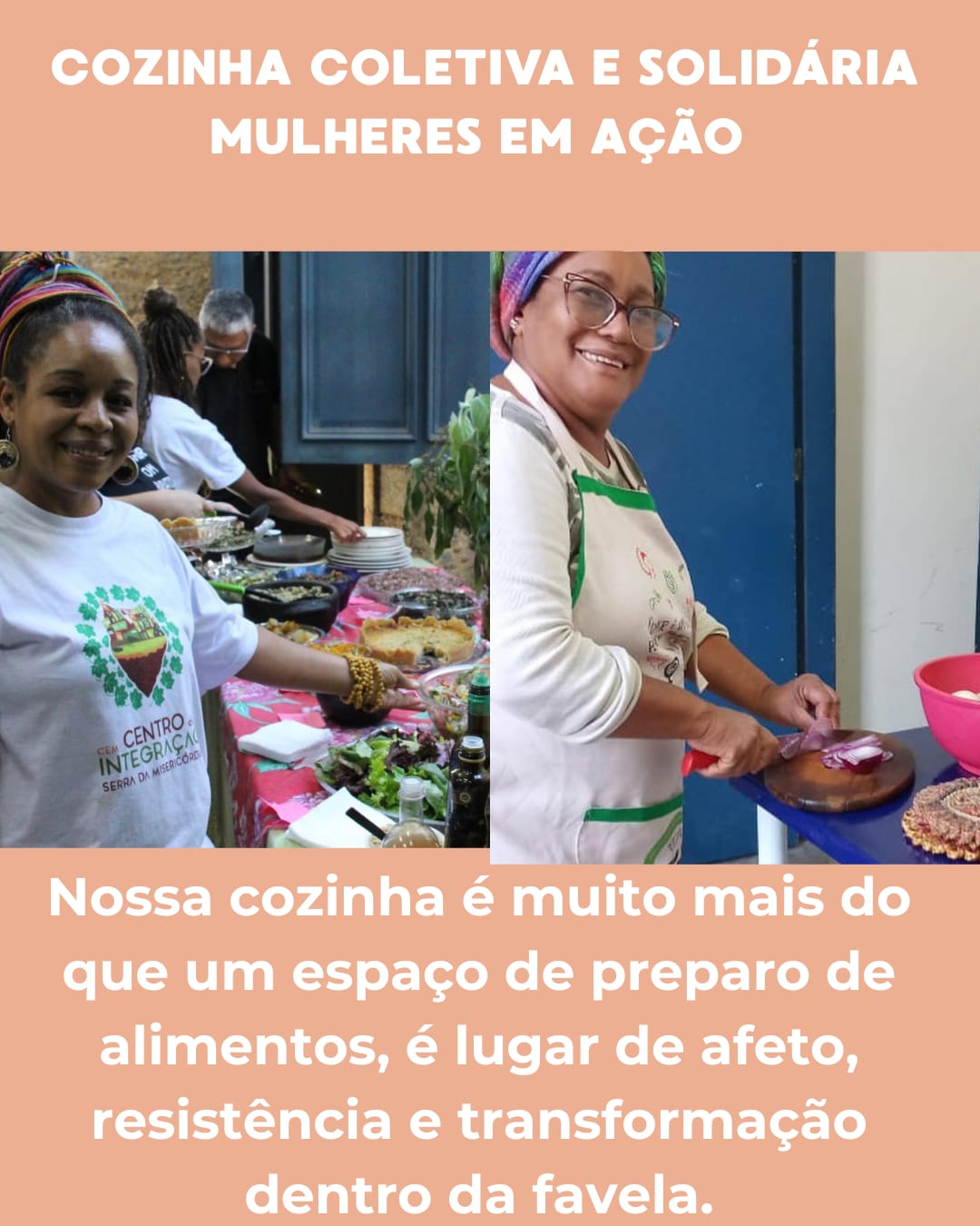 Criada em 2020, a Cozinha Mulheres em Ação nasceu do sonho coletivo de mulheres do Centro de Integração na Serra da Misericórida, que decidiram unir forças, saberes e sabores para alimentar sua comunidade com afeto, dignidade e respeito à ancestralidade.