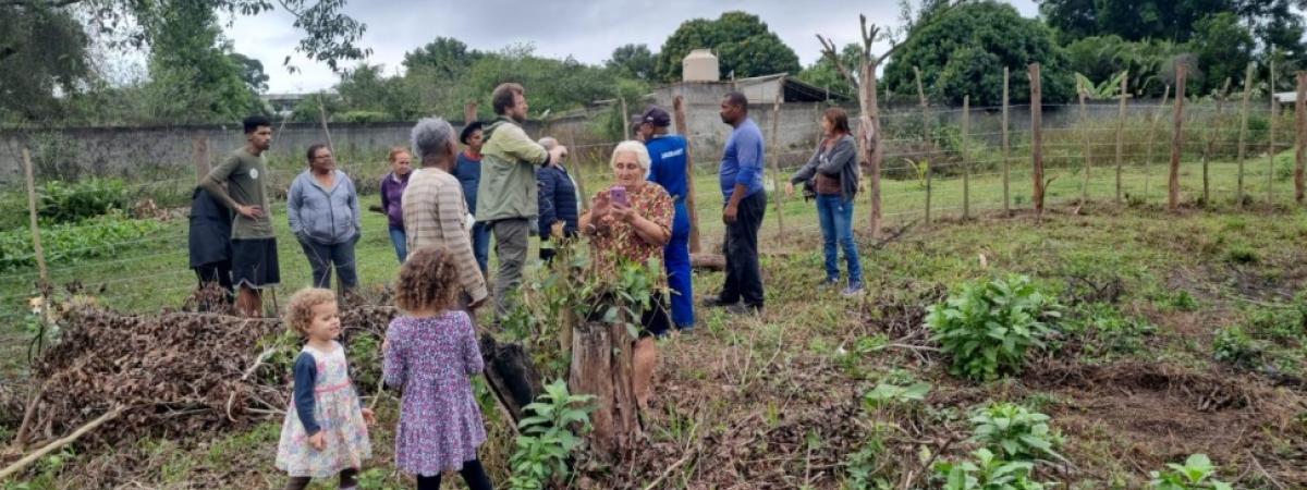 Durante o mutirão estiveram presentes os vizinhos da Dona Dalila, que falaram sobre saberes e colheitas que envolvem o dia a dia do território. No almoço, os participantes do mutirão foram presenteados com uma comida especial: vaca atolada e feijoada feitas no fogão a lenha pelas vizinhas da agricultora.
