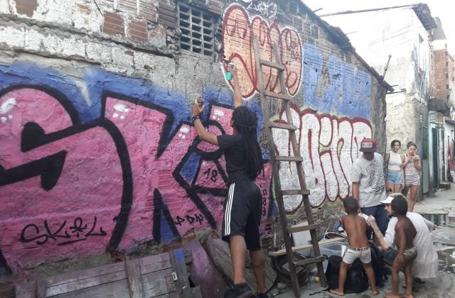 O Coletivo Pão e Tinta já tem quase dez anos de atuação e se constitui por artistas, produtores/as, articuladores/as sociais e militantes periféricos/as residentes, em sua maior parte, na Comunidade do Bode – Bairro do Pina, em Recife – Pernambuco. Realiza diversas ações de potencialização artística da cena independente, utilizando a arte como meio de transformação social, com força ativa nas periferias do Pina. Revitaliza, por meio da arte, os espaços segregados e abandonados. Produz anualmente, desde 2012, o Encontro Internacional de Artes Pão e Tinta, e diversas outras ações e eventos que dão visibilidade a artistas de diversos segmentos culturais da cena independente. Resgata e fortalece a juventude que muitas vezes escolheria caminhos mais tortuosos para seguir. Executa e produz o Leilão em Chamas Pirata, iniciativa de economia criativa e empreendimento periférico, que remunera diversos artistas independentes. Protagoniza a luta pelo direito à cidade e pela democratização dos espaços de cultura, reunindo em seu núcleo um grupo diversificado de pessoas, que impulsionam em suas lutas a representatividade de suas causas.