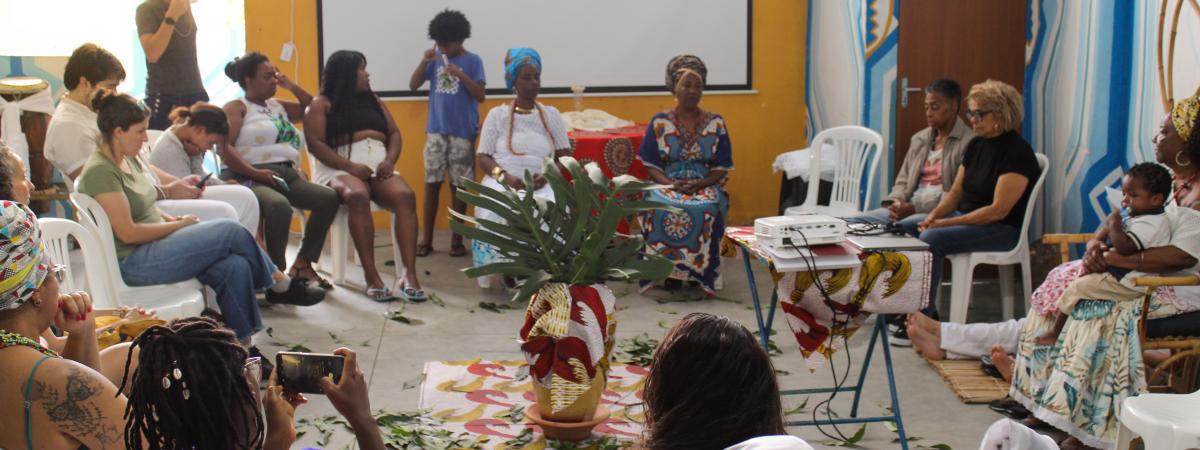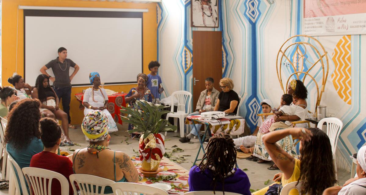 No mesmo dia, a Caravana visitou o Kilombo Manzo Ngunzo Kaiango, onde continuou o diálogo sobre as intersecções entre comunidades tradicionais e a luta contra os racismos religiosos. A visita foi conduzida pelas matriarcas Mametu Muiadê, Makota Kidoiale e Mãe Sessy. Makota Kidoiale destacou a necessidade de ampliar a concepção de quilombos, reconhecendo comunidades negras que não se enquadram nos critérios rígidos do Estado. Ela falou sobre as particularidades dos quilombos urbanos e as dificuldades de viver sem espaço para plantar e colher, realidade comum a muitos desses territórios. Para ela, a luta pela regularização fundiária deve integrar o combate ao racismo em suas diversas formas, incluindo o religioso.